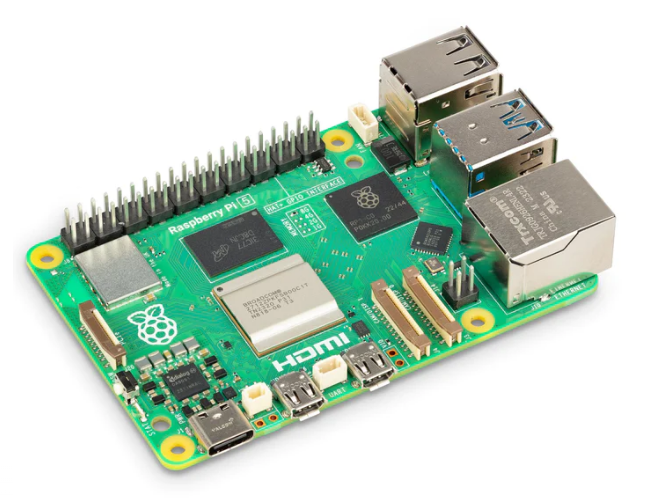 Powerful Raspberry Pi 5 Board: Features a 2.4 GHz quad-core 64-bit Arm Cortex-A76 processor and VideoCore VII GPU, capable of dual 4Kp60 display output.